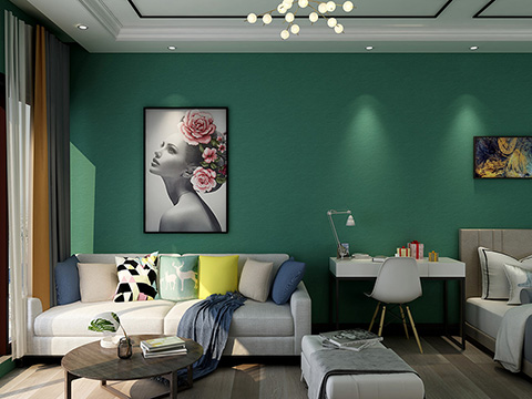 SLT4B-深翠绿T竹炭纤维无缝墙布装修案例效果图